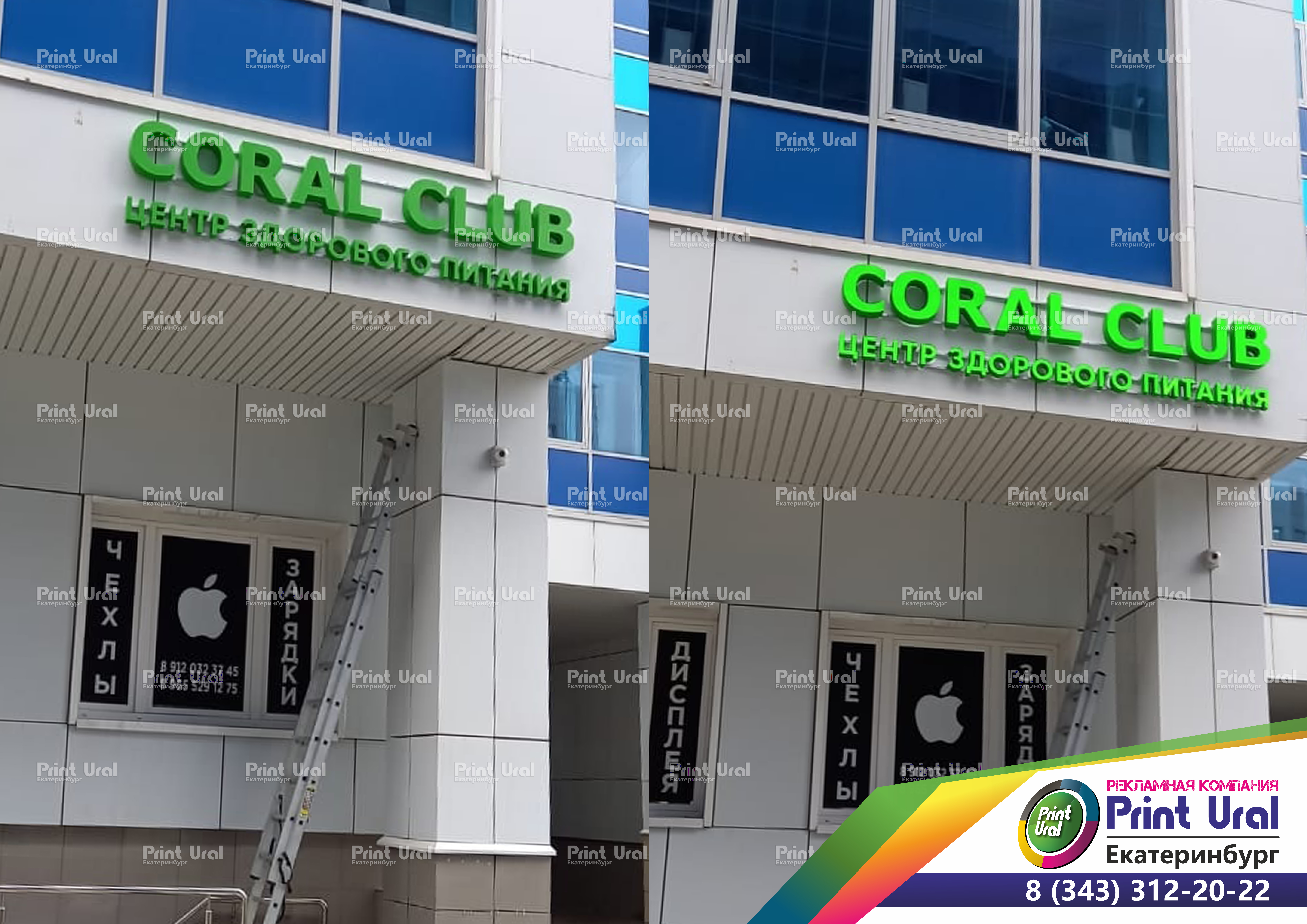Создание наружной светодиодной рекламы для компании Coral Club. Компания Принт Урал занимается изготовлением наружной рекламы с этапа согласования до монтажа конструкции.