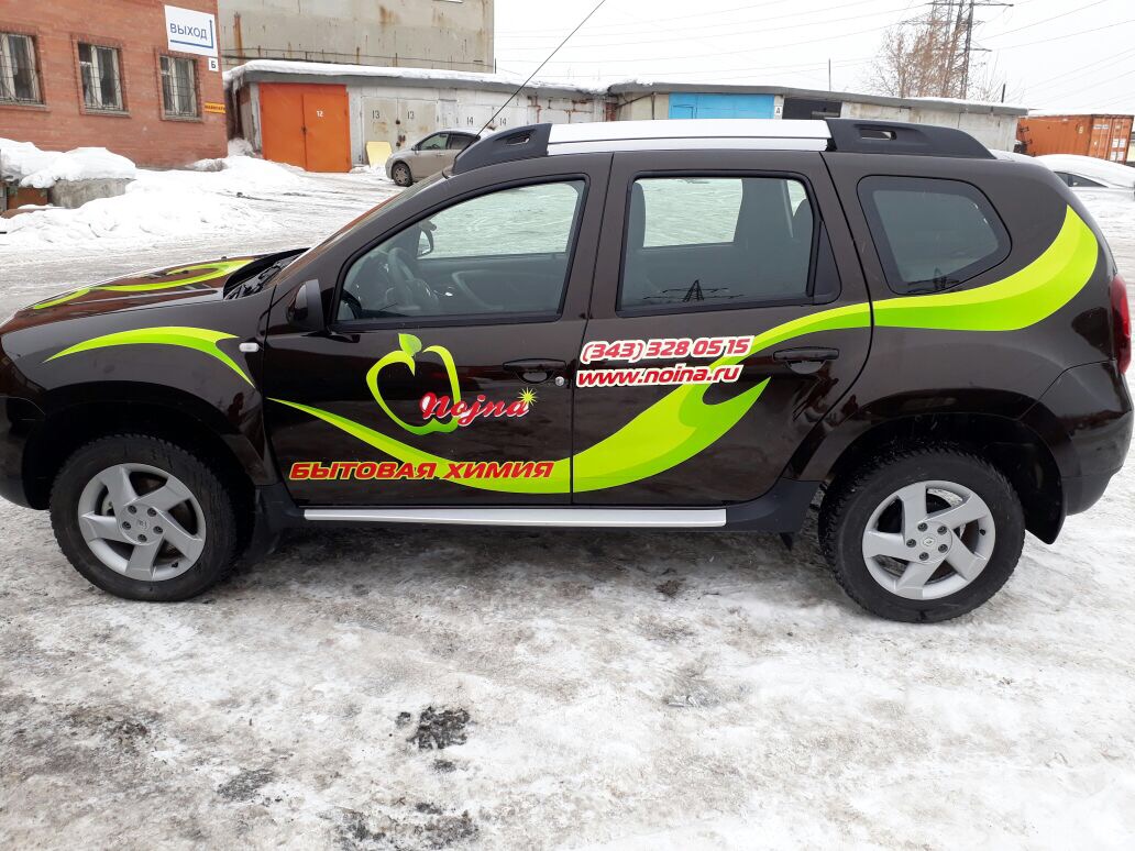 Компания "Нойна", занимающаяся поставками средств бытовой химии, заказала в "Print Ural" изготовление рекламы для "Рено Дастер". Реклама получилась яркой, она выгодно выделит авто среди основного потока машин и обратит внимание потенциальных клиентов.