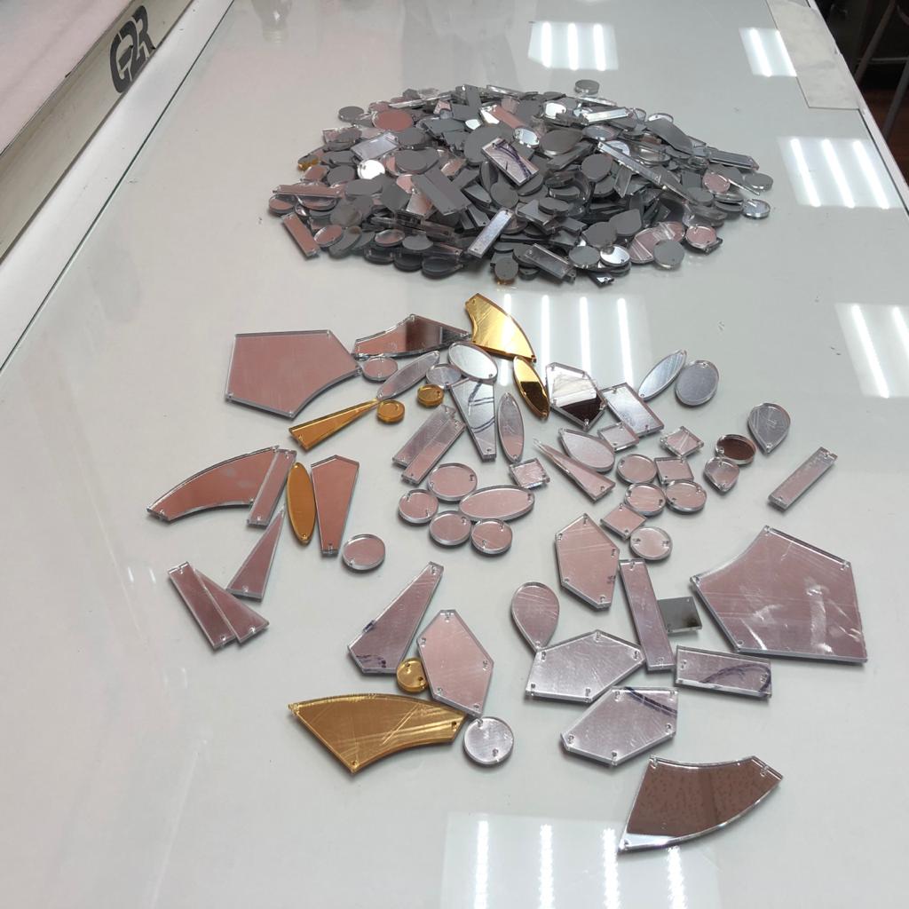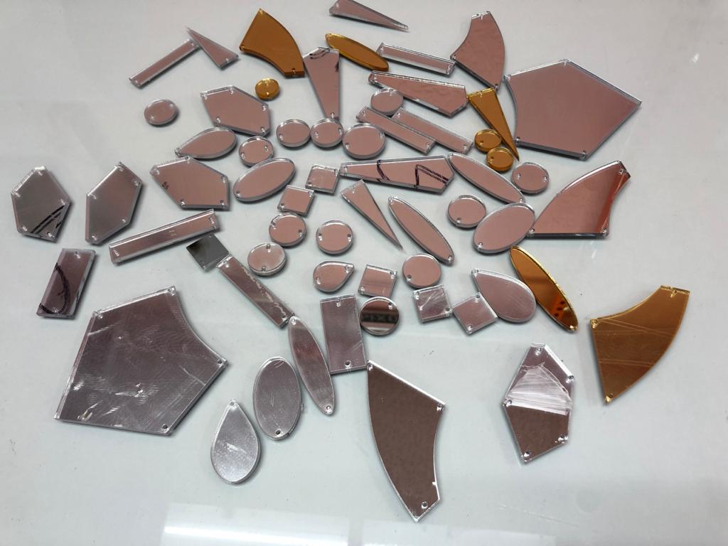 Пришивные зеркальные стразы. Размер 2х3см, форма может быть любая.