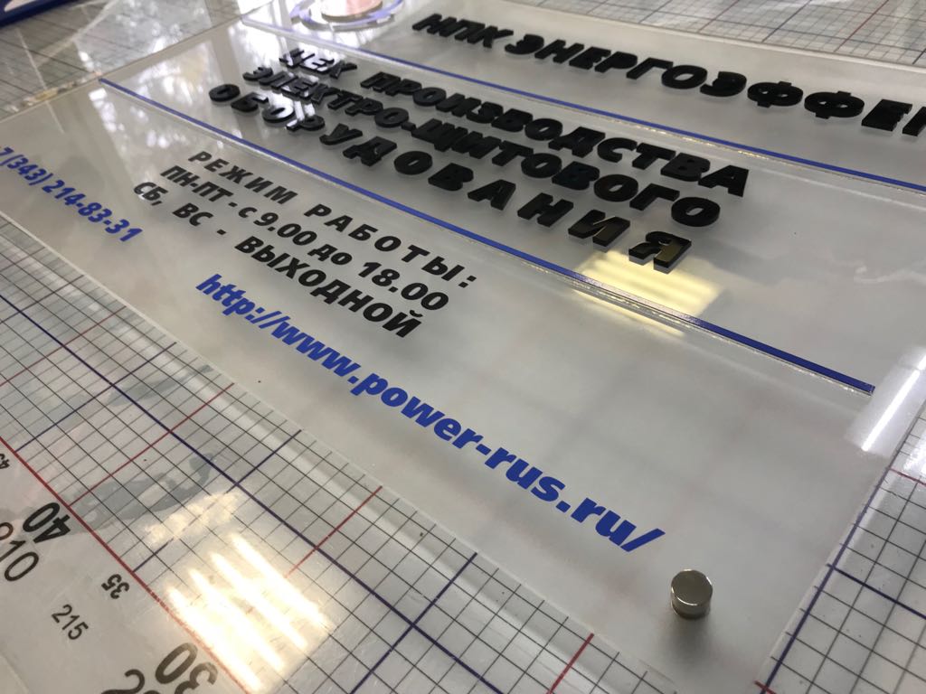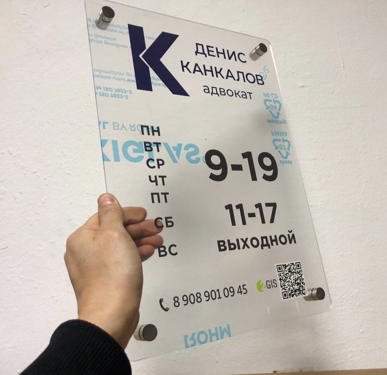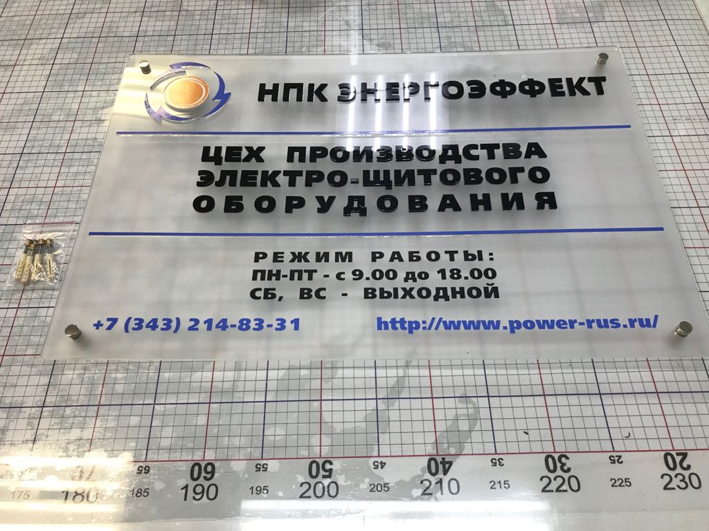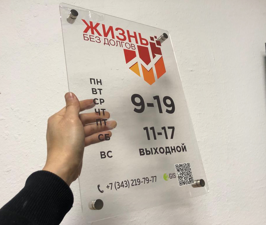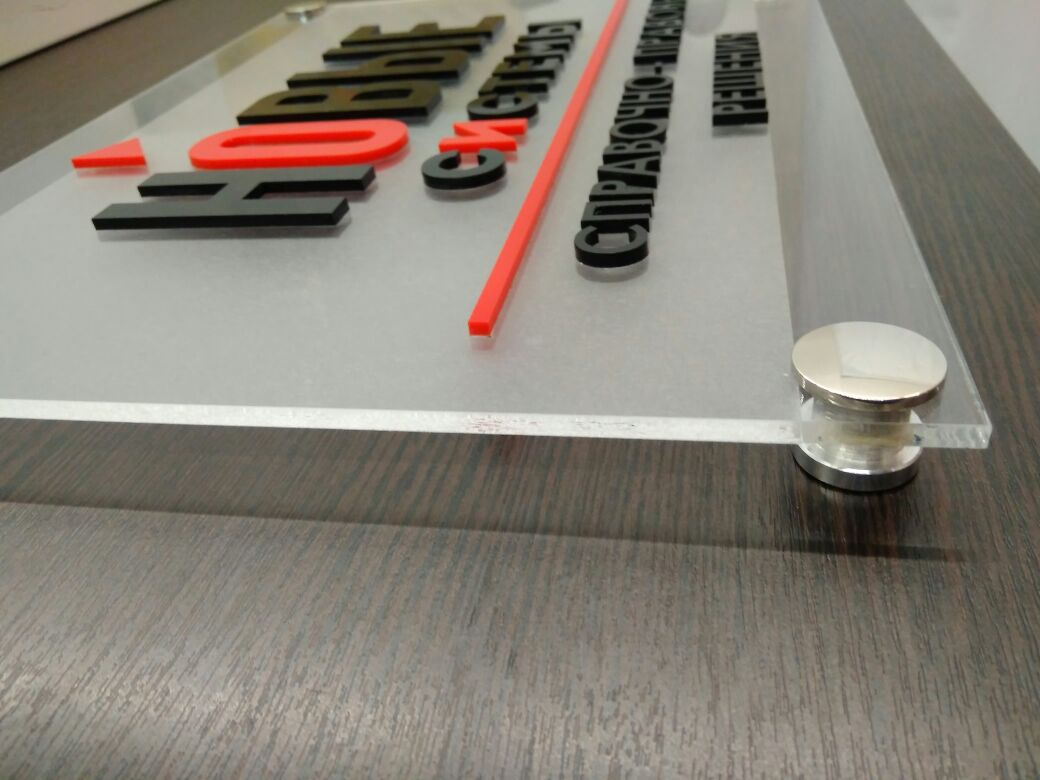 Заказать табличку из оргстекла вы сможете в "Print Ural", а дистанционные держатели позволят вам зафиксировать такую табличку надежно и качественно.