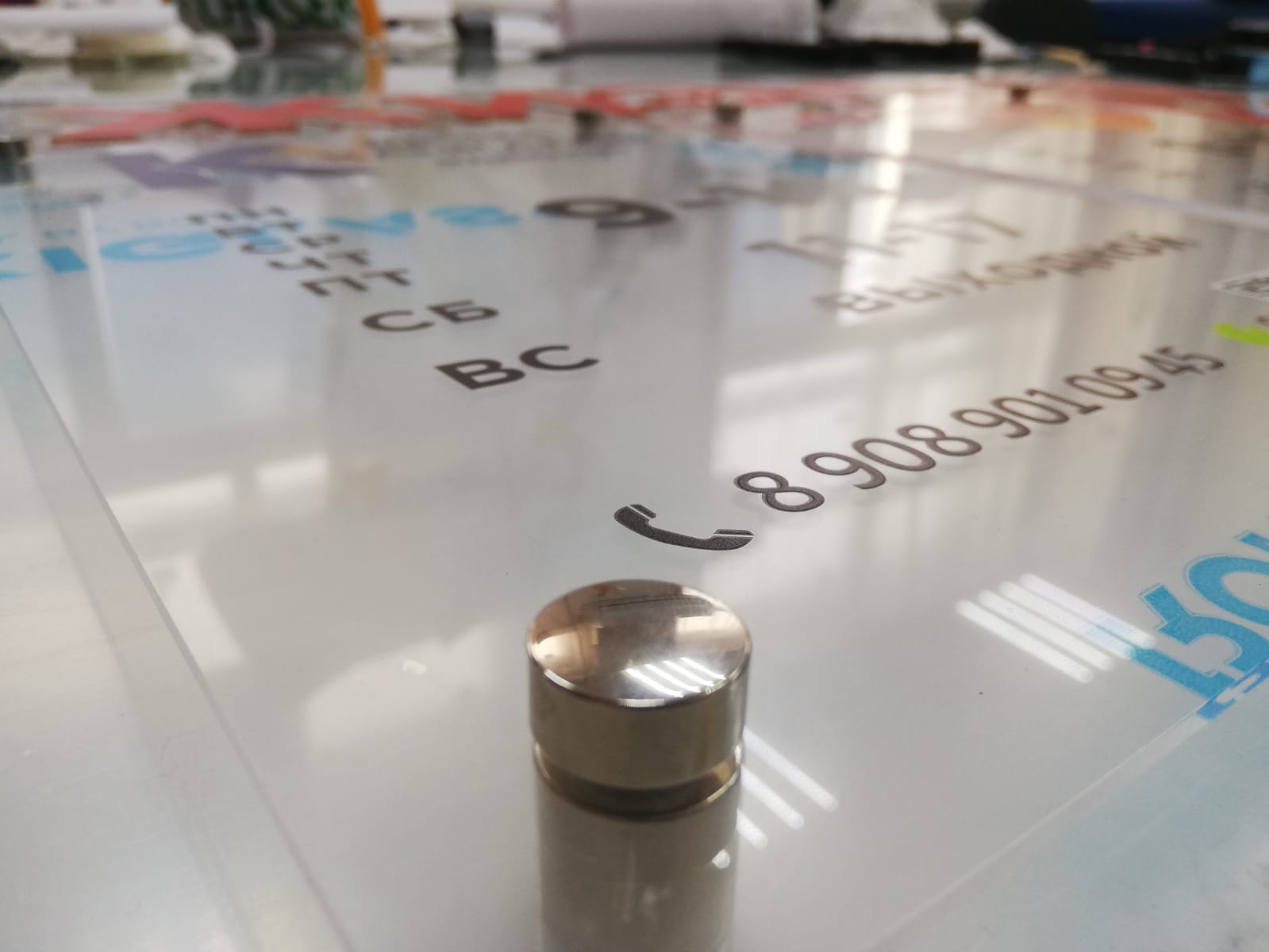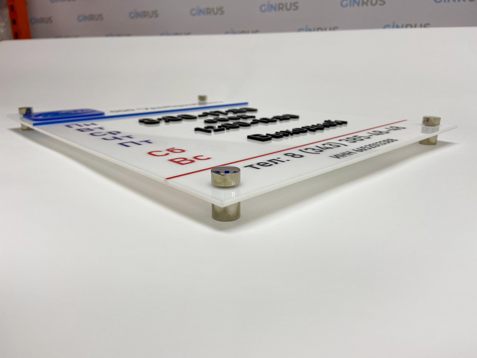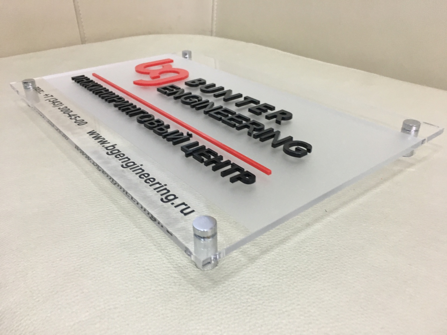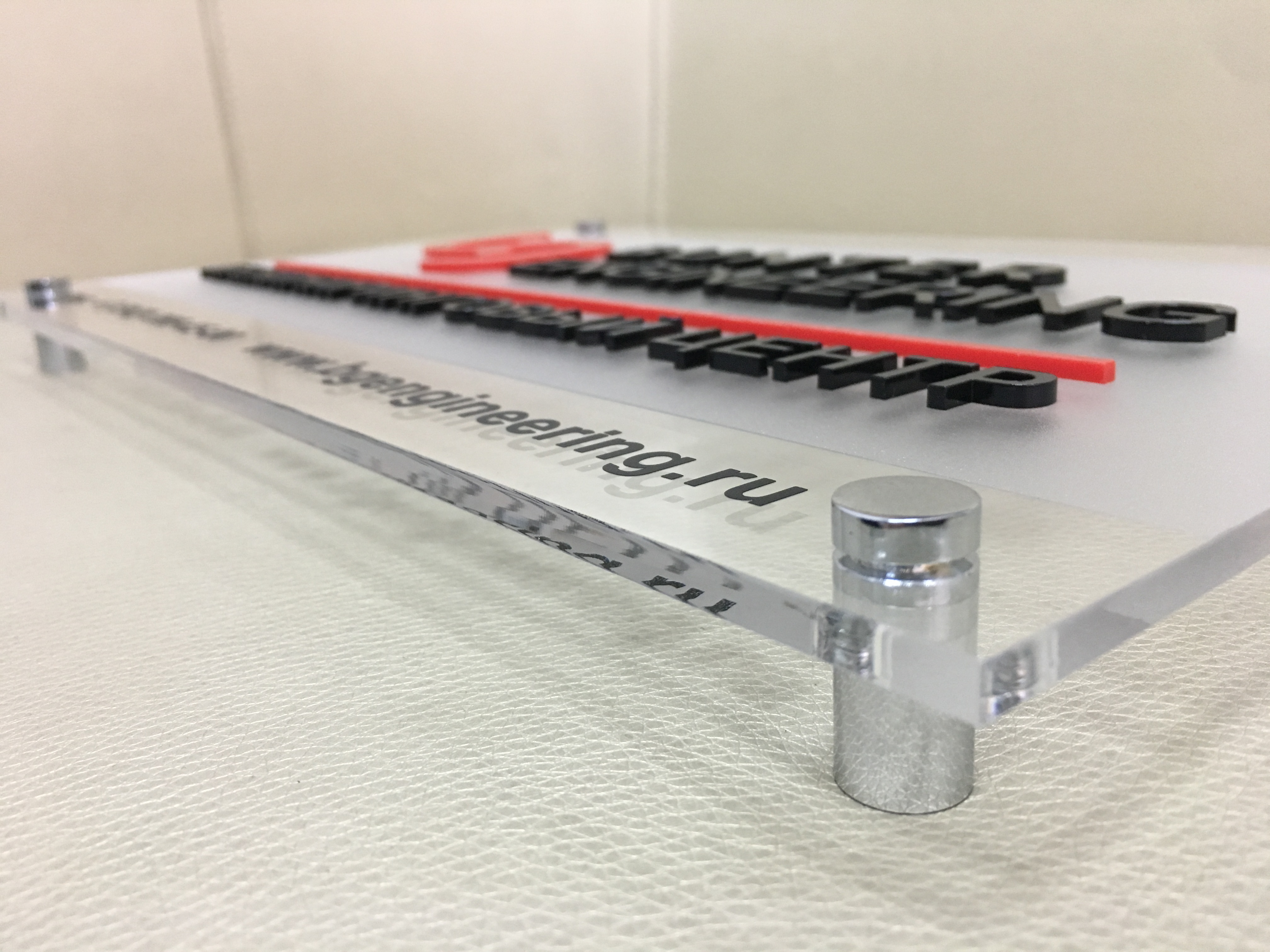 Заказать табличку из оргстекла вы сможете в "Print Ural", а дистанционные держатели позволят вам зафиксировать такую табличку надежно и качественно.